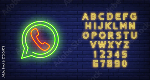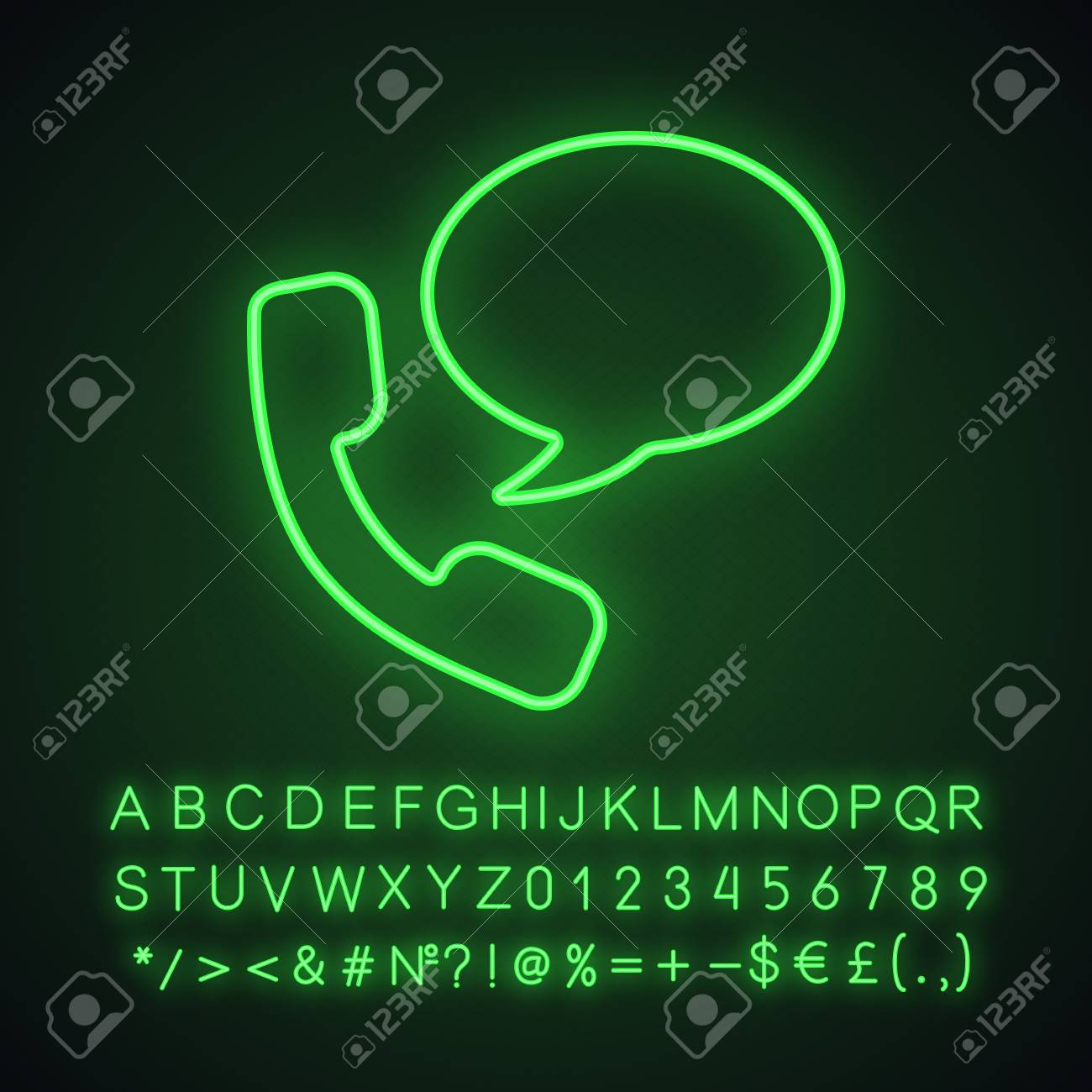 Handset With Speech Bubble Neon Light Icon Hotline Telephone Royalty Free Cliparts Vectors And Stock Illustration Image 112215550