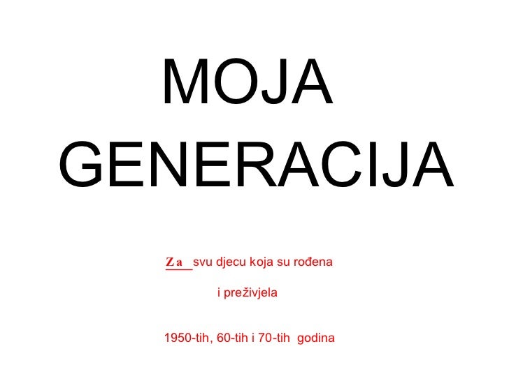 Moja generacija. Got all serious because it has to be like that. My generation from year forty two. Moja generacija my generation was the yugoslavian entry to the eurovision song contest 1974 performed in serbo croatian by veteran rock band korni grupa. A new post appears on the high school girl s blog.