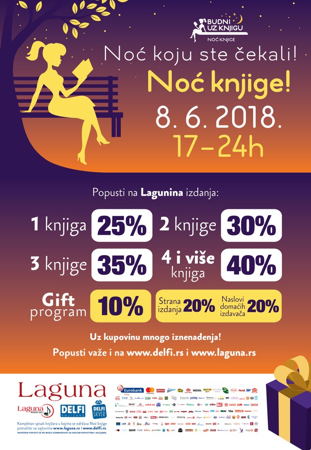 Noc knjige popusti. Popusti do 50 na određene naslove. Organizatori noći knjige su. U svim knjižarama delfi lag. Zajednica nakladnika i knjižara hrvatske gospodarske komore nacionalna i sveučilišna knjižnica u zagrebu knjižnice grada zagreba udruga za zaštitu prava nakladnika zana knjižni blok inicijativa za knjigu portal za knjigu i kulturu moderna vremena info te hrvatska udruga školskih knjižničara.