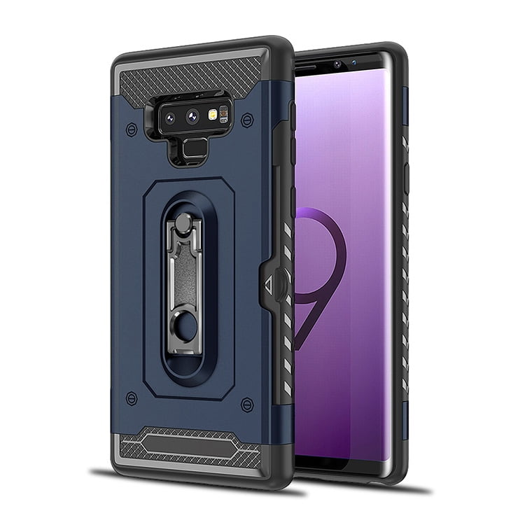 Galaxy Note 9 Case Galaxy Note 9 Armor Case Allytech Card Holder Id Slot Pocket Dual Layer Hybrid Cover Shockproof Anti Scratch Protective Hard Shell Bumper Armor For Samsung Galaxy Note 9 Blue