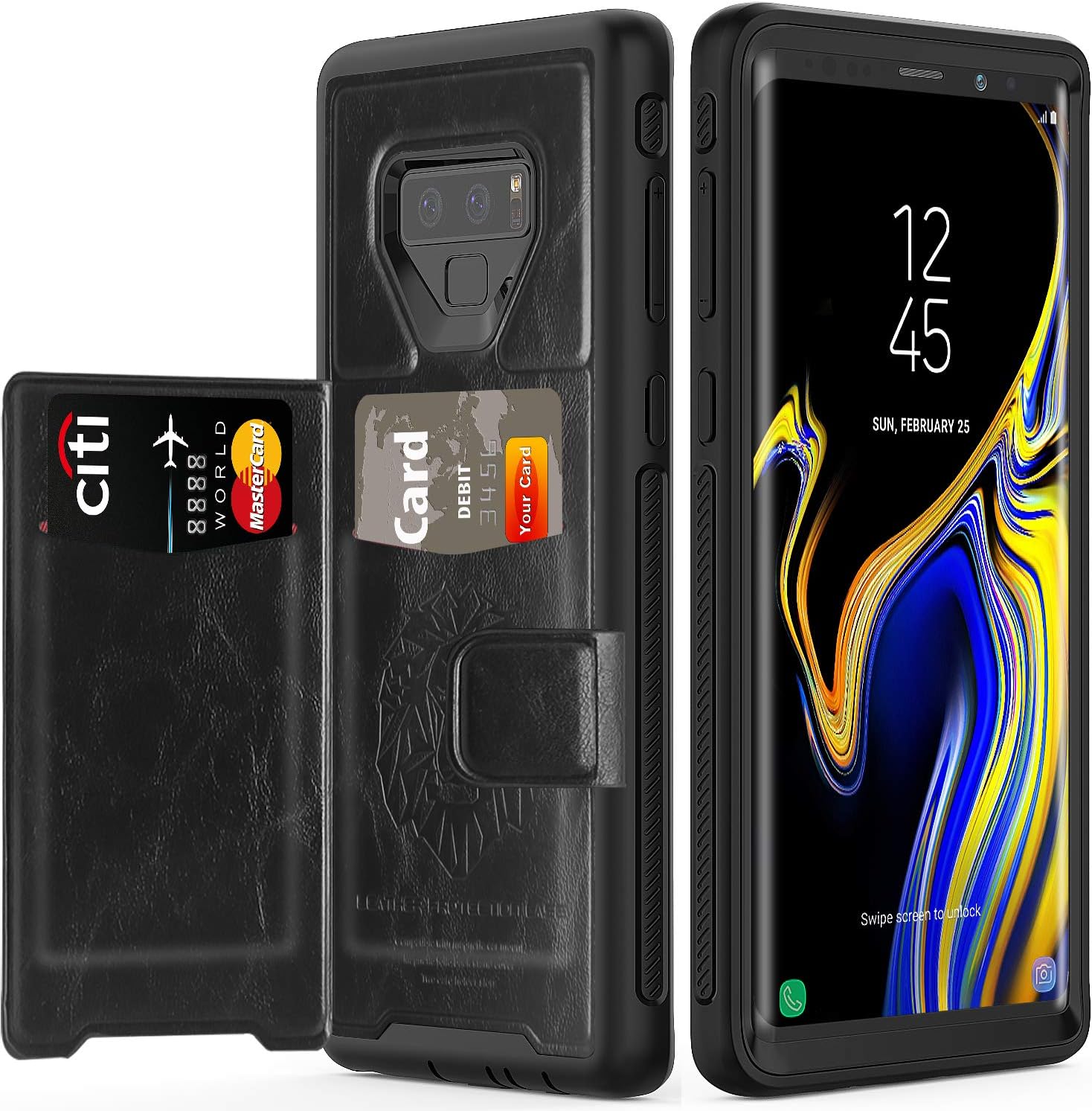 Card Holder Note 9 Case Ultra Durable Slim Leather Wallet Case