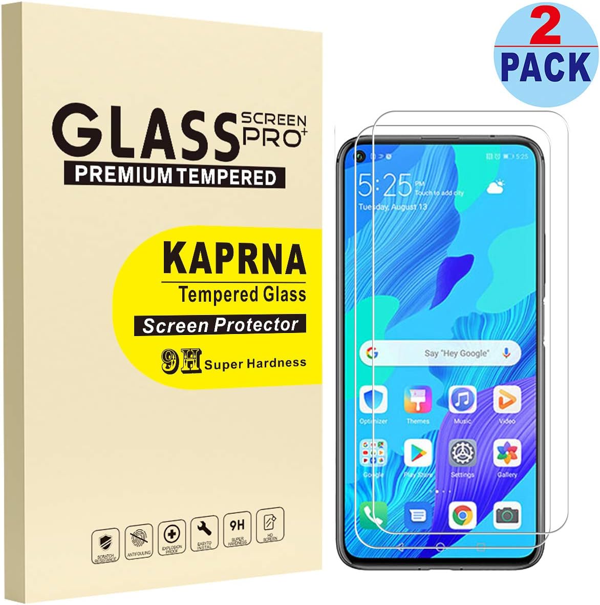 Amazon Com 2 Pack Kaprna Compatible With Huawei Nova 5t Screen Protector 9h Hardness Tempered Glass Film For Huawei Nova 5t 6 26 High Definition