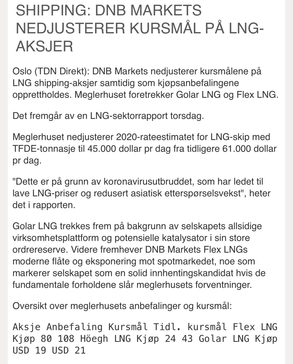 Bullontank On Twitter Dnb Markets Nedjusterer Lng Aksjer Oott Finanstwitter Flng Hlng Gol