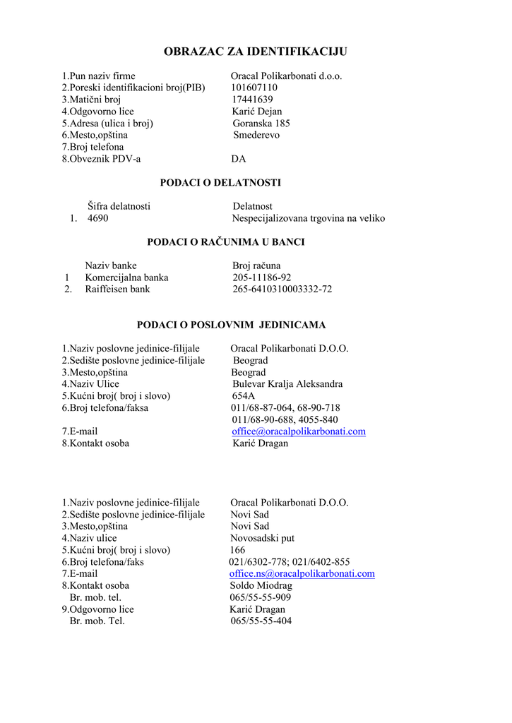 Obrazac Za Identifikaciju