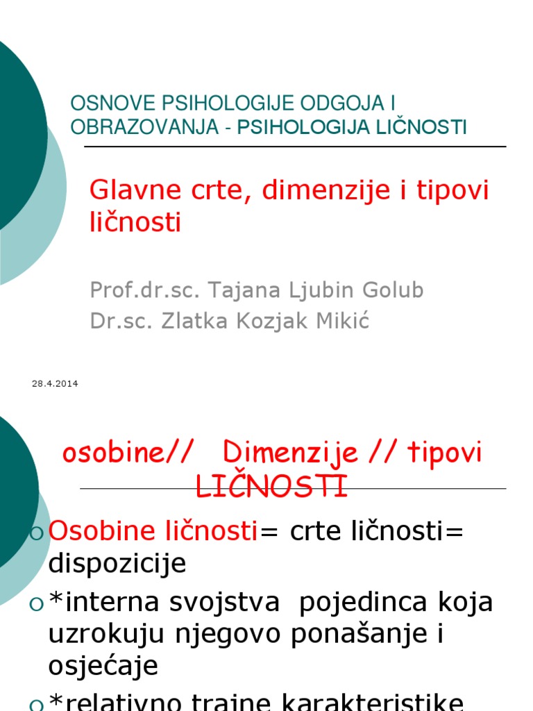 Licnost Osobine Licnosti I Njihovo Merenje Slajdovi Psihologija Fon Docsity