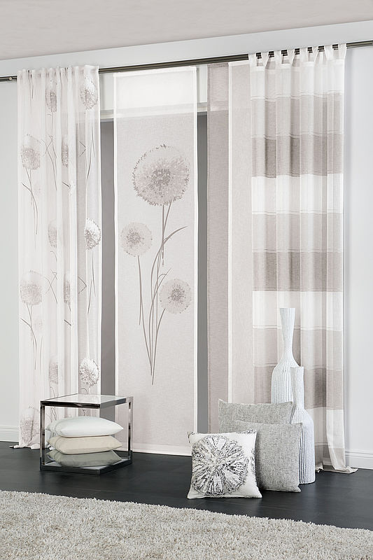 Panelna zavesa je na videz zelo podobna lamelni zavesi le da so trakovi nekoliko širši.