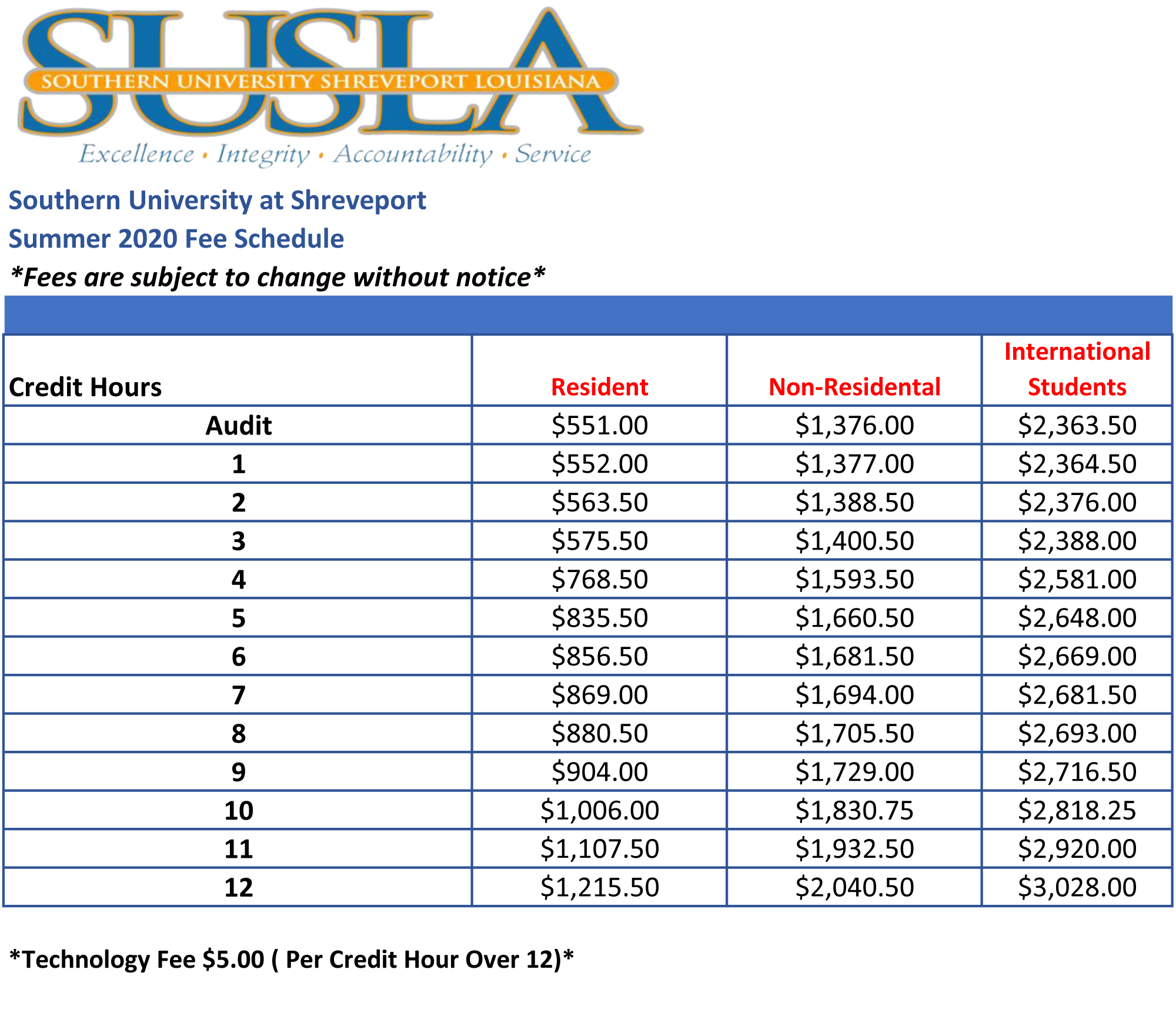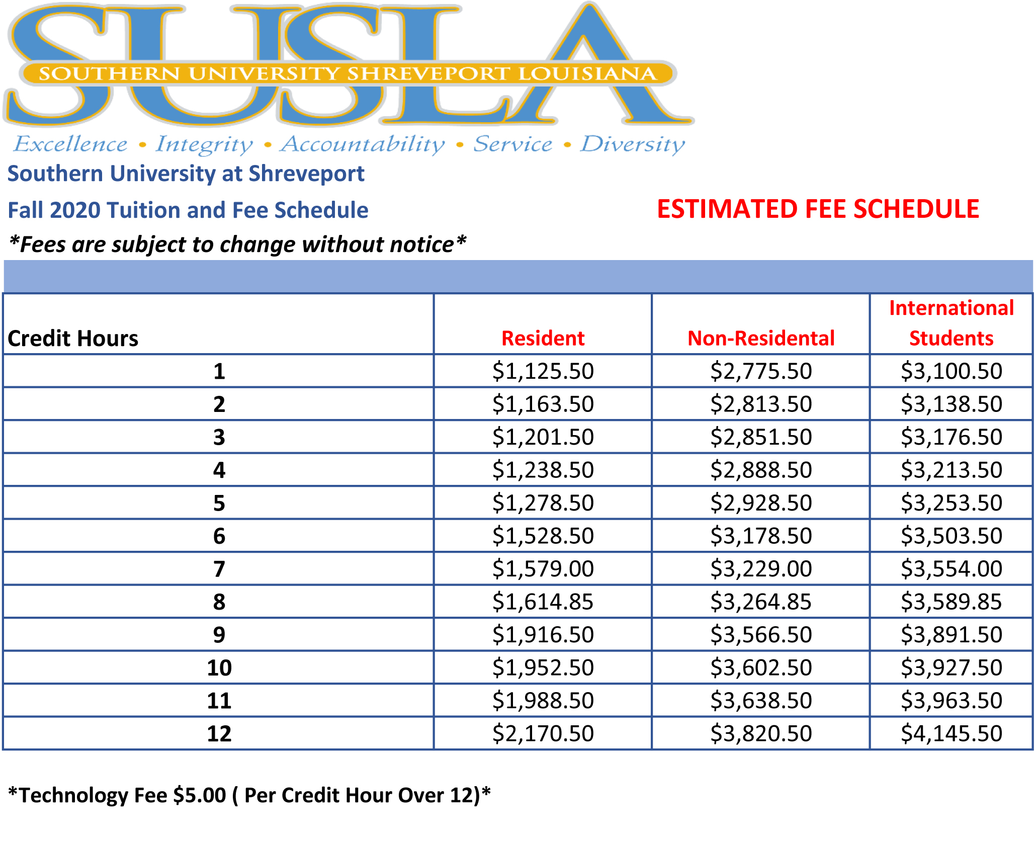 Tuition Fees Southern University Shreveport Louisiana