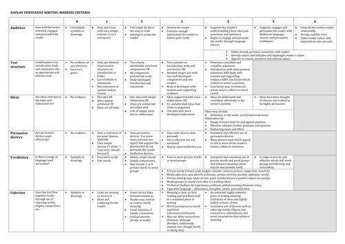 Naplan Persuasive Writing Marking Rubric Teaching Resources