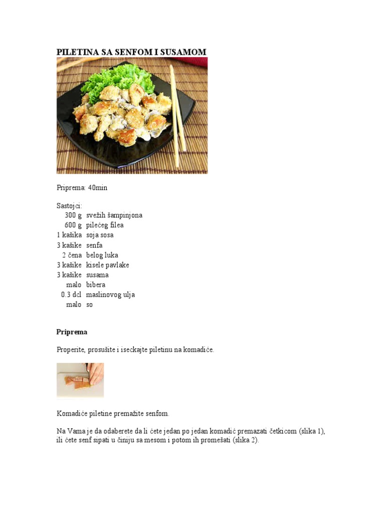 Piletina Sa Senfom I Susamom Recepti Kuvar